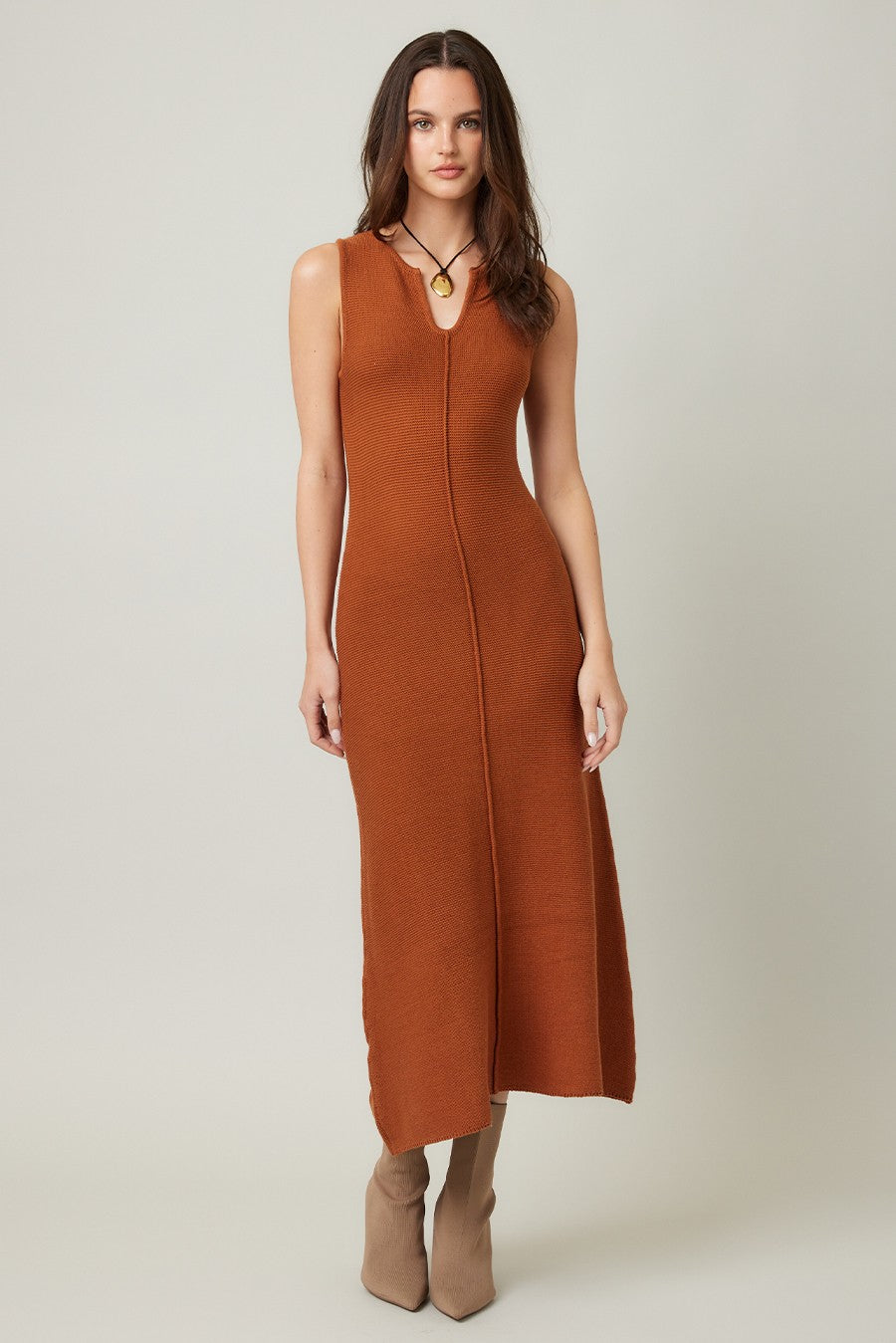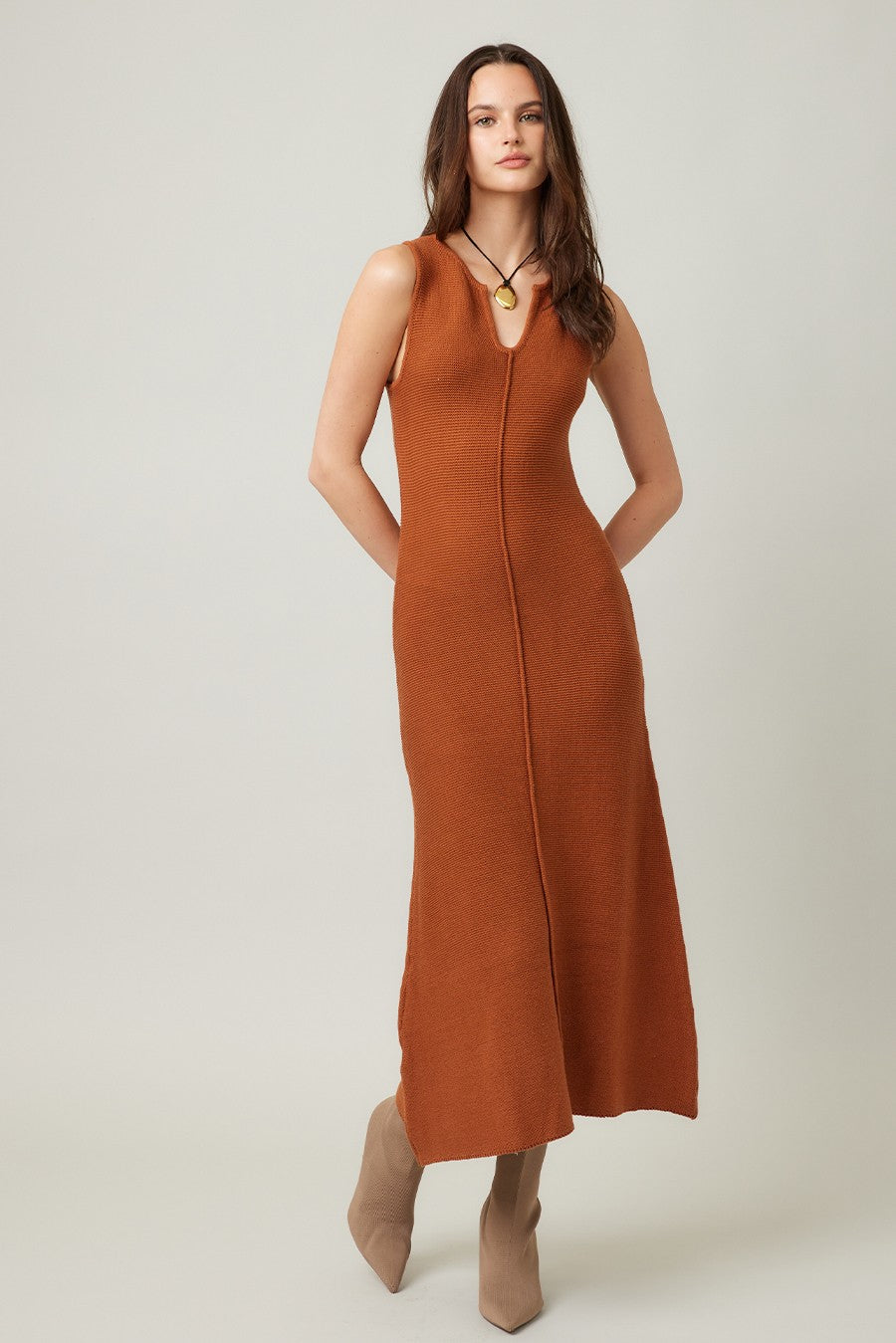 Chestnut Sleeveless V-Neck Knit Maxi Dress
