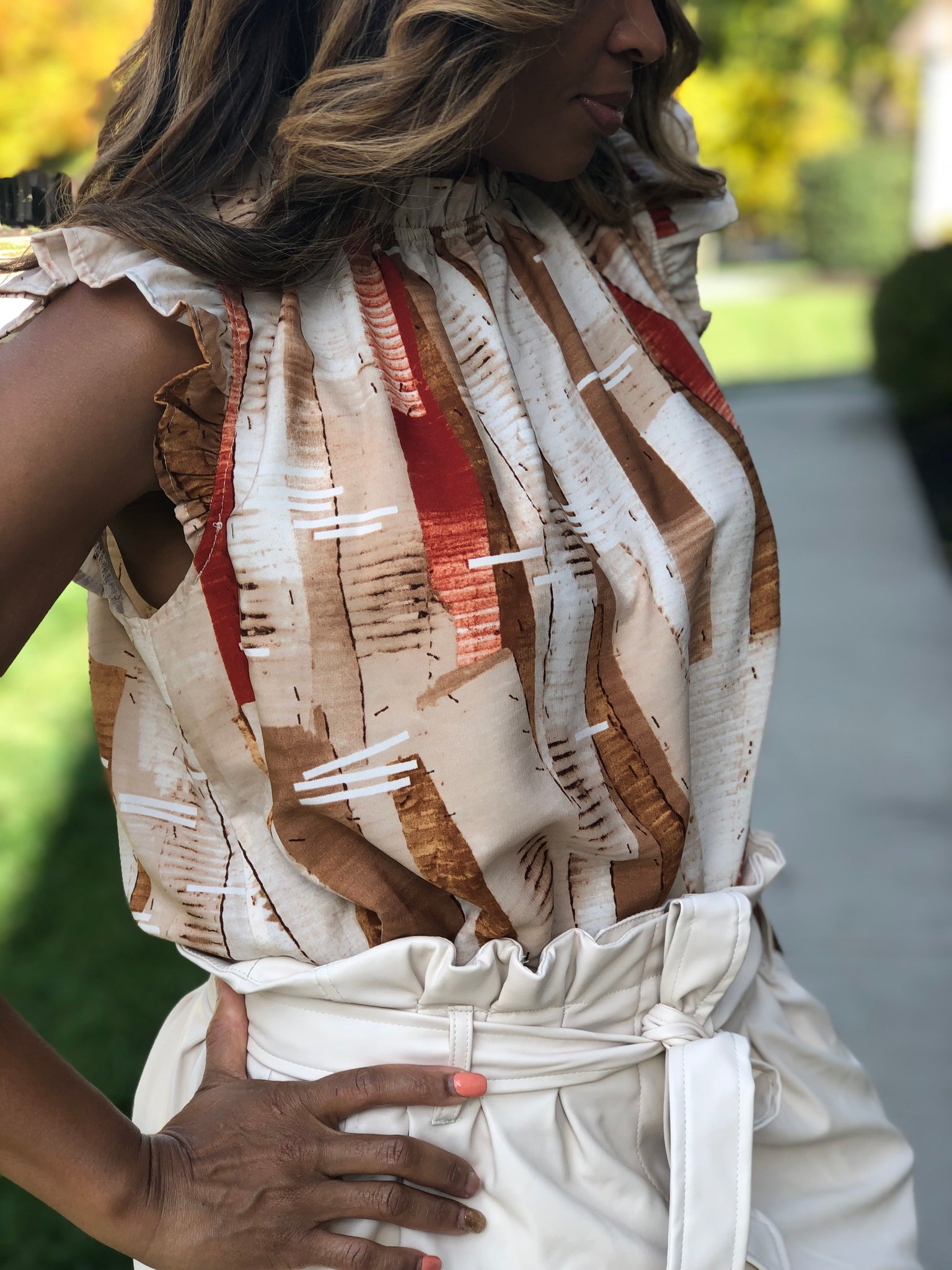 Cayenne Ruffle Neck Sleeveless Top