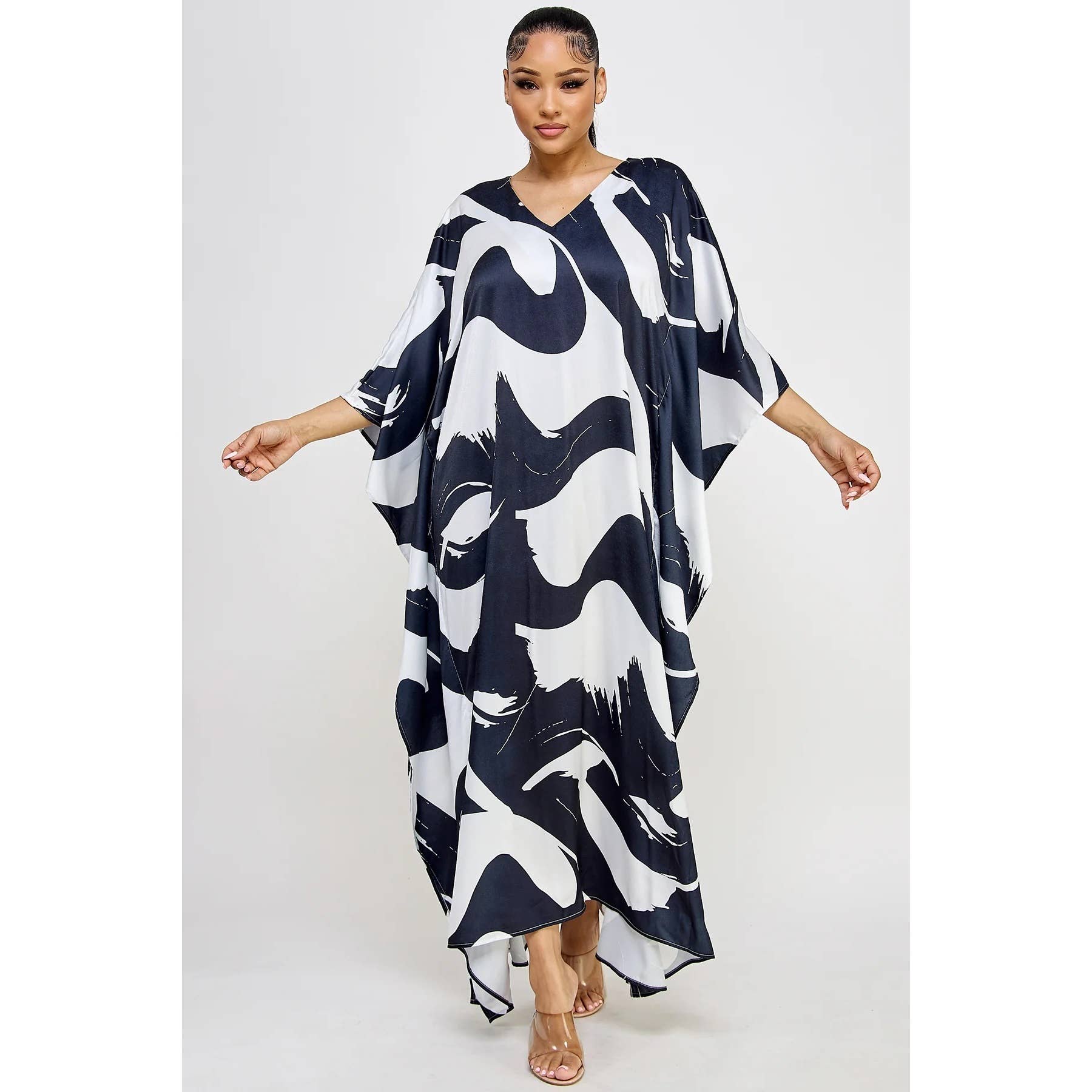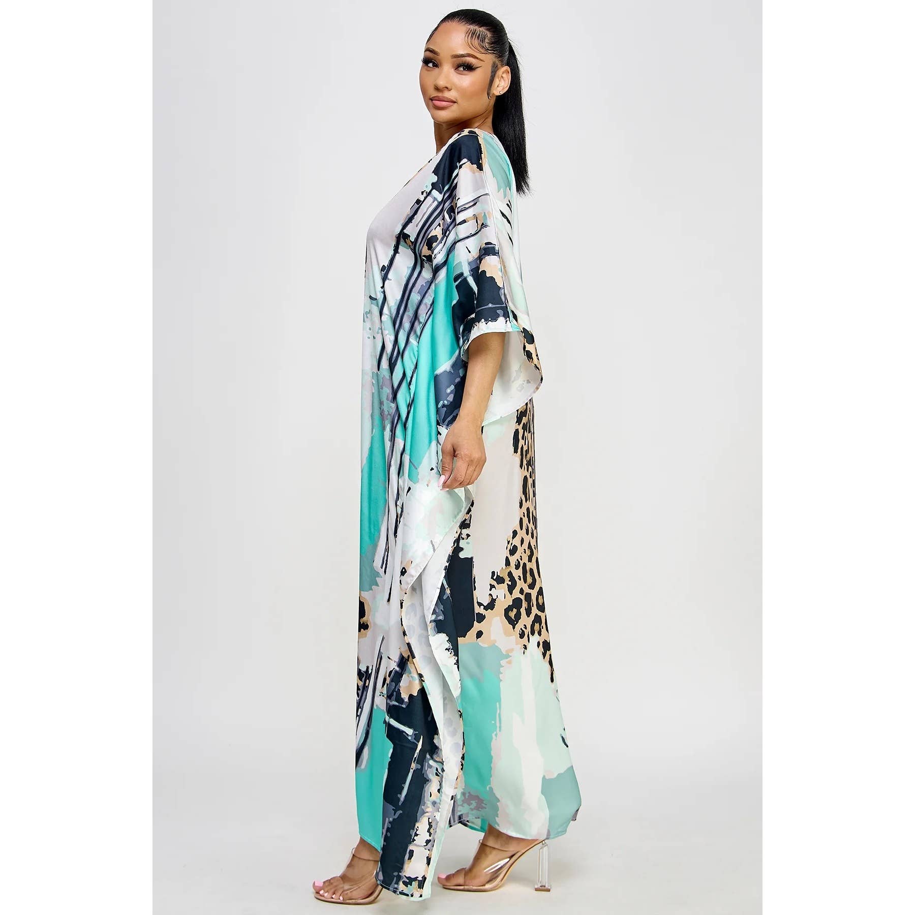 Elevate your elegance with this V-neck loose fit maxi satin dress, perfect for beach vacations, summer parties, and relaxing weekends. Its flowing design and luxurious feel ensure you look stunning and stay comfortable.