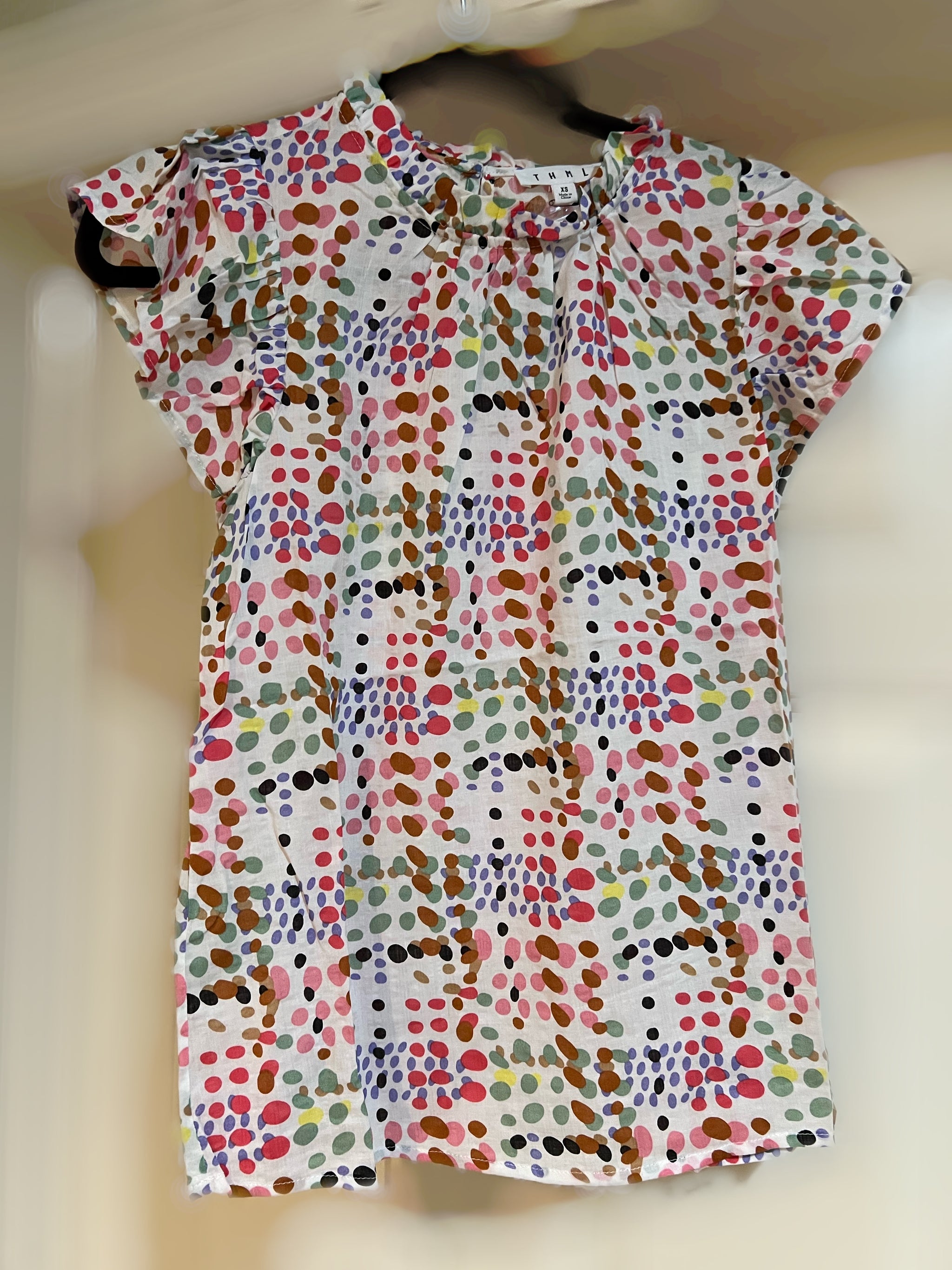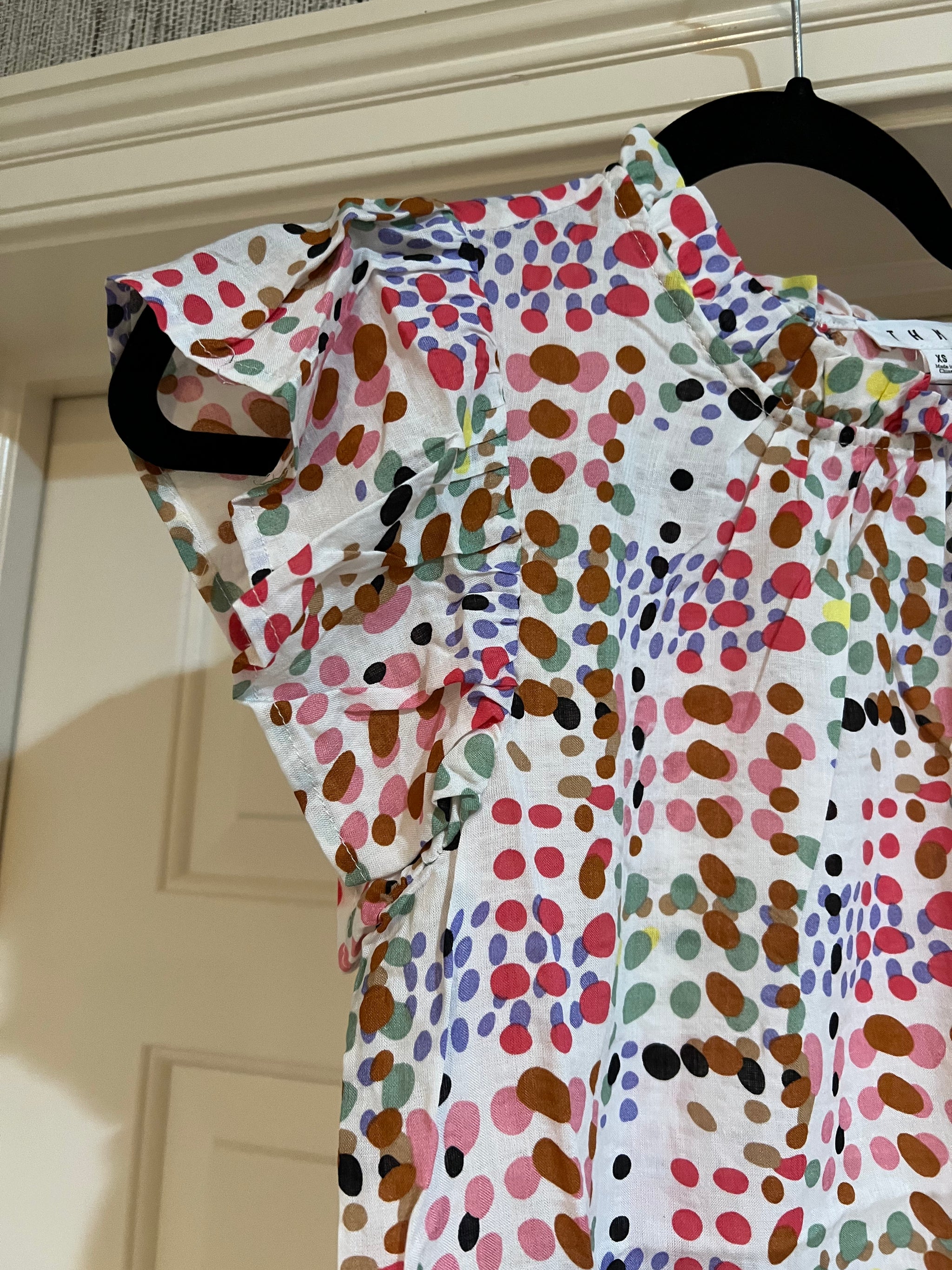 Have some fun in the sun with the ruffle sleeveless multi color top. Mock neck ruffle detail. Beautiful classic style dress up or down easy care light weight 100% cotton