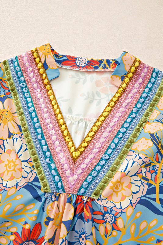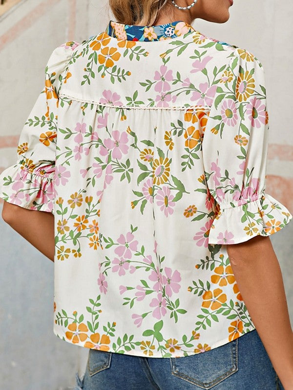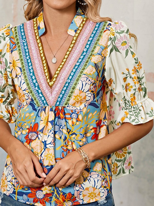 Multicolour Half Sleeve Boho Floral Blouse