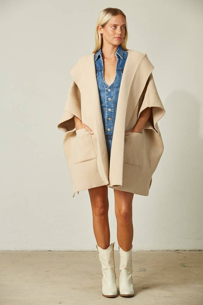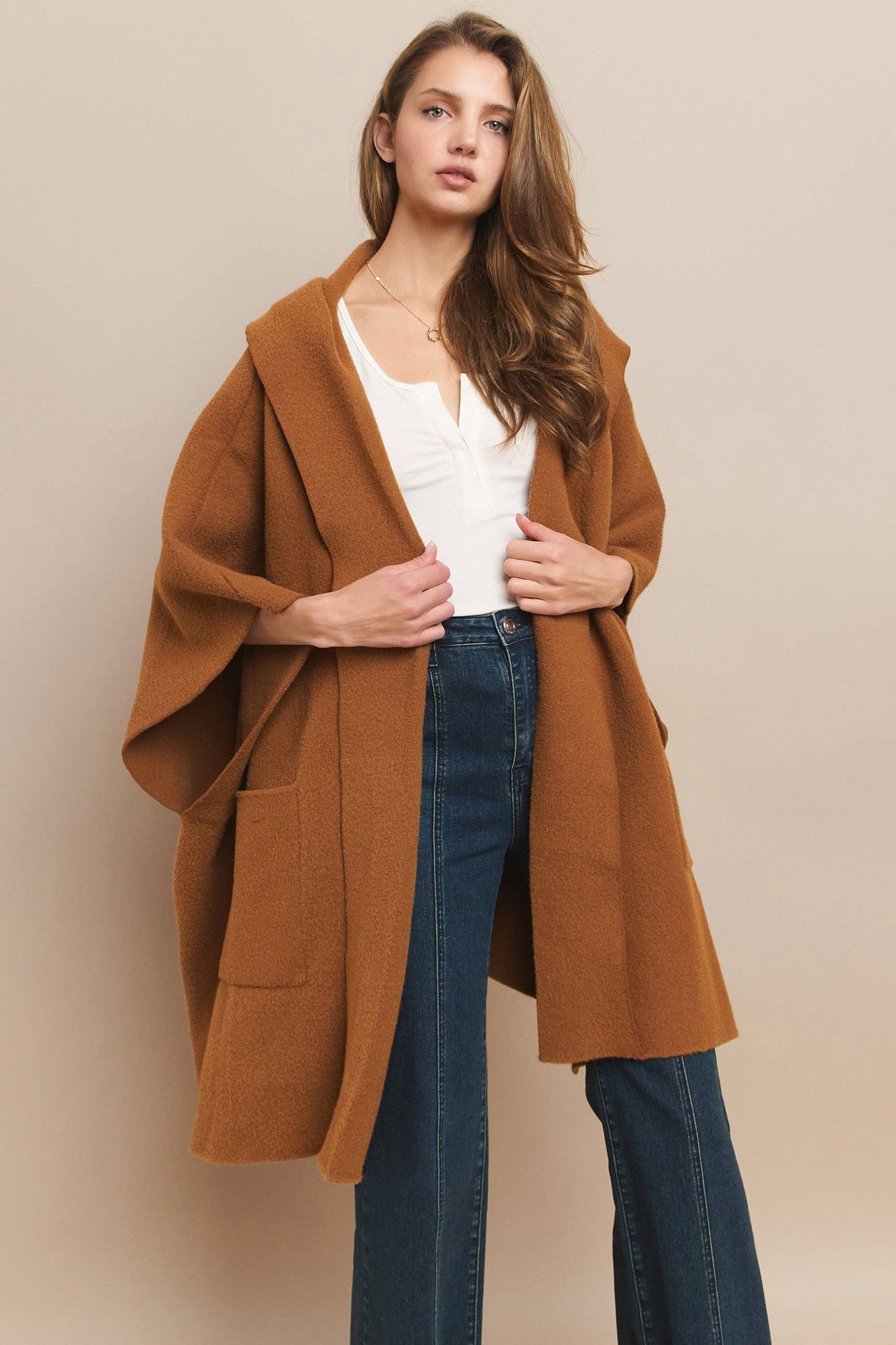 Experience ultimate comfort with this oversized soft brushed knit poncho hoodie, designed for relaxed wear and warmth. Crafted from a plush, brushed fabric, it offers a cozy feel against the skin while its roomy fit allows for easy layering. Practical pockets add convenience, making it perfect for casual outings or lounging at home. This versatile piece combines style and function, ideal for those seeking effortless comfort without compromising on design.