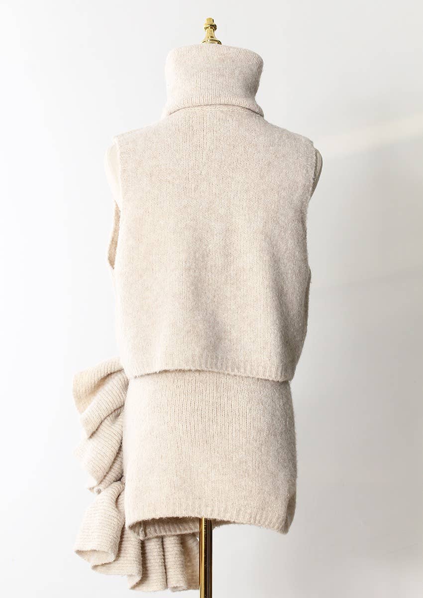 Soft Neutrals Knit Set – Jacket, Turtleneck & Skirt