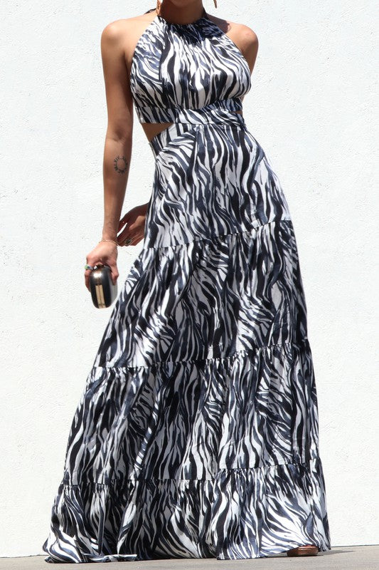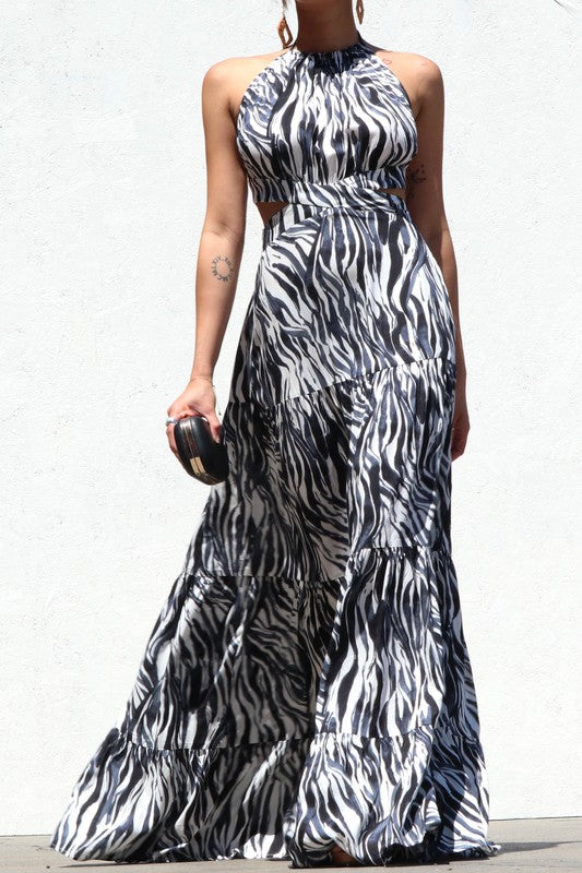 Zebra Print Halter Dress